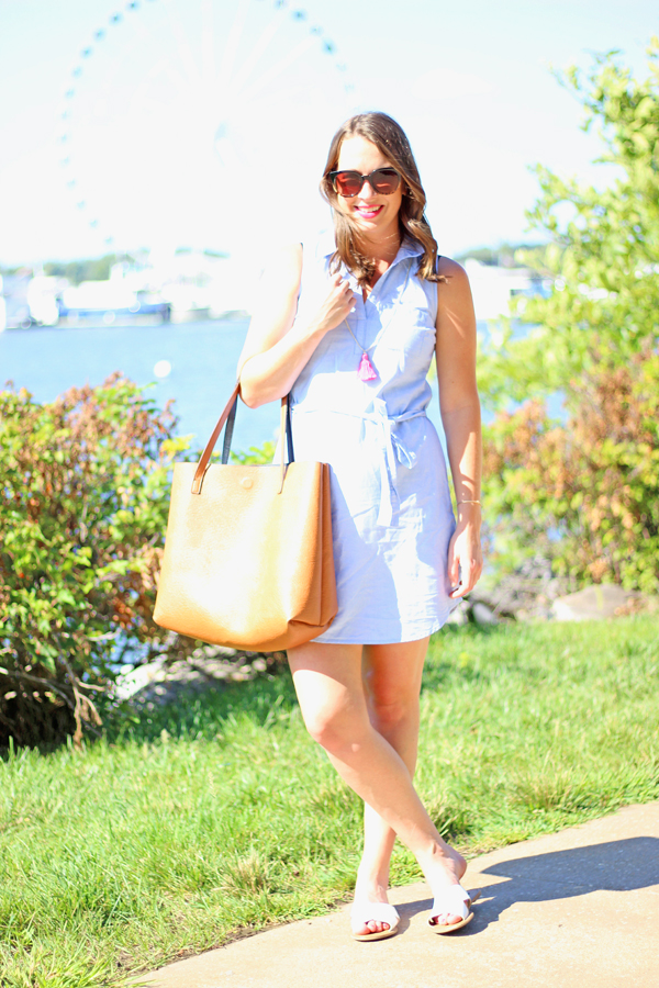 Anyway...this chambray dress is one of the items in my closet that I always grab. First of all I love the color...but it is also so easy to change up with lip stick or different color shoes...a scarf..anything!